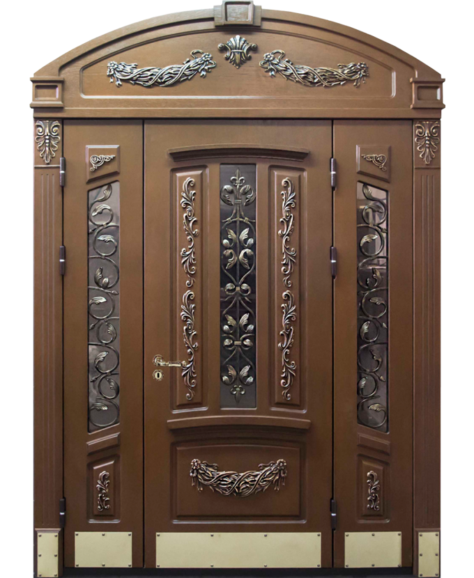 Входные арочные двери по внешней отделке